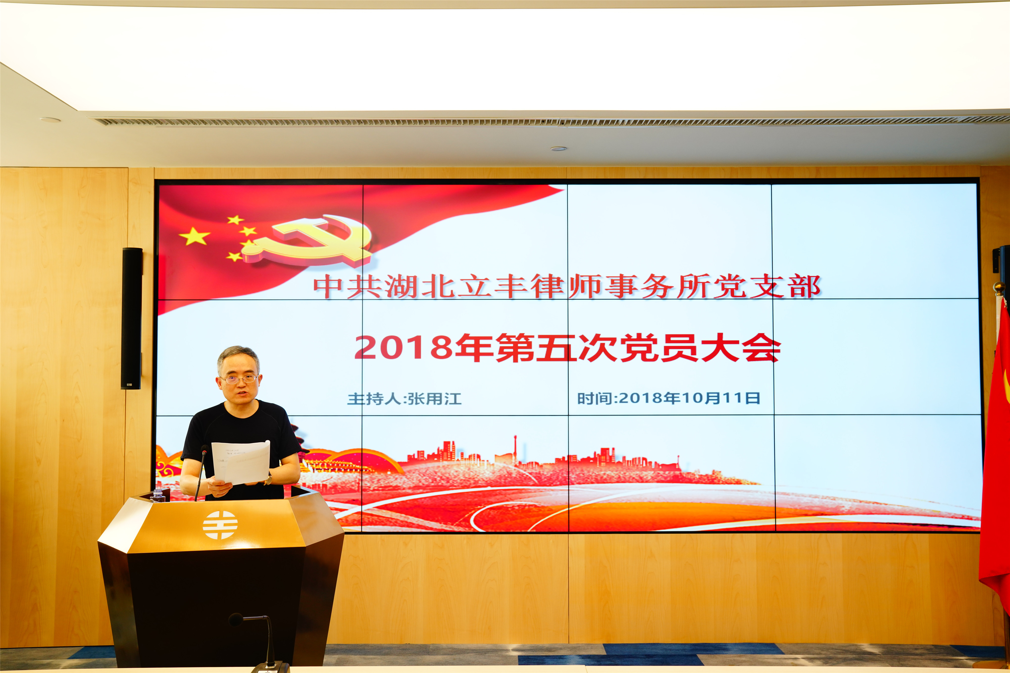 2018年10月11日下午,立豐黨支部在律所新址18樓1會議廳召開了2018年第五次黨員大會,會議由立豐黨支部書記張用江同志主持,立豐所黨員38人參加會議(應(yīng)到56人,請假18人)。