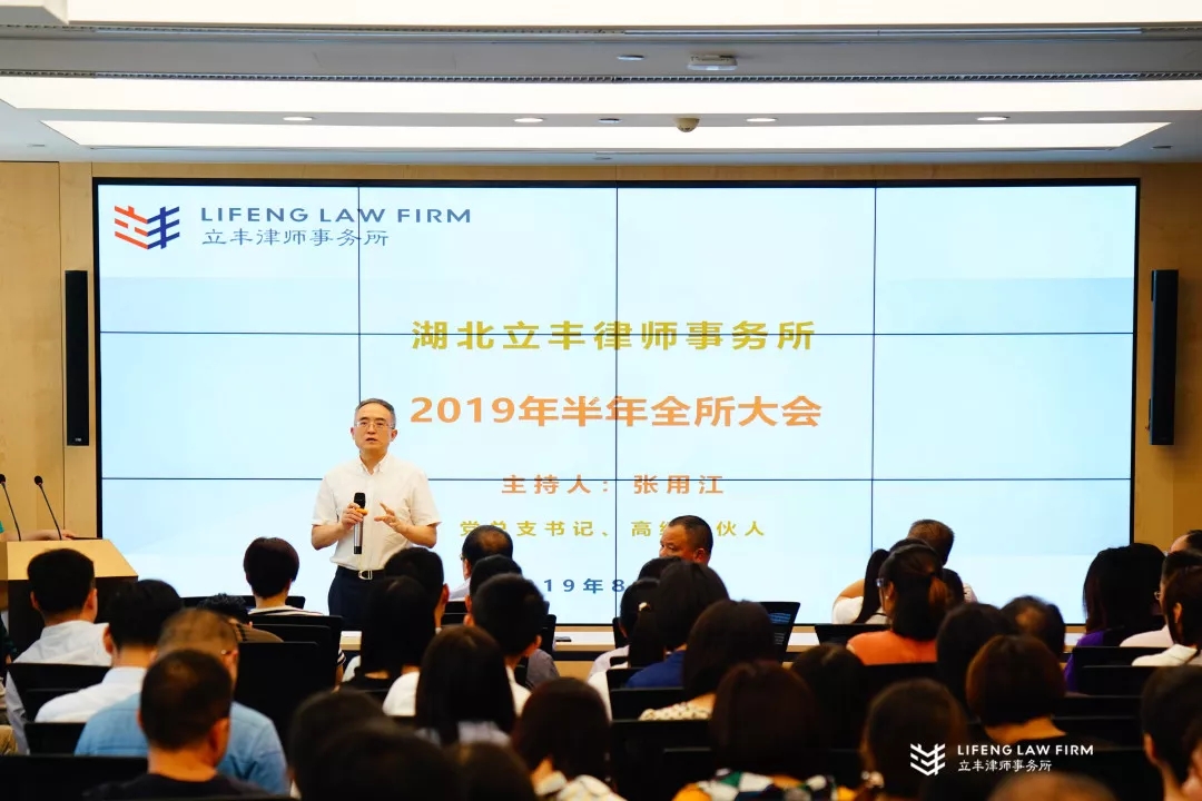 2019年8月16日下午,湖北立豐律師事務所(以下簡稱“立豐所”)在本所18樓1號會議廳召開了全所大會暨黨員大會,立豐所全體律師、實習律師及行輔人員近180人參加了本次會議。其中,黨員及預備黨員、積極分子共計55人。