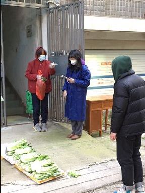 中共黨員、行政人員宋雪瑜,作為志愿者,參與東湖風(fēng)景區(qū)梨園社區(qū)的愛心菜及團(tuán)購物資的分配與發(fā)放工作。