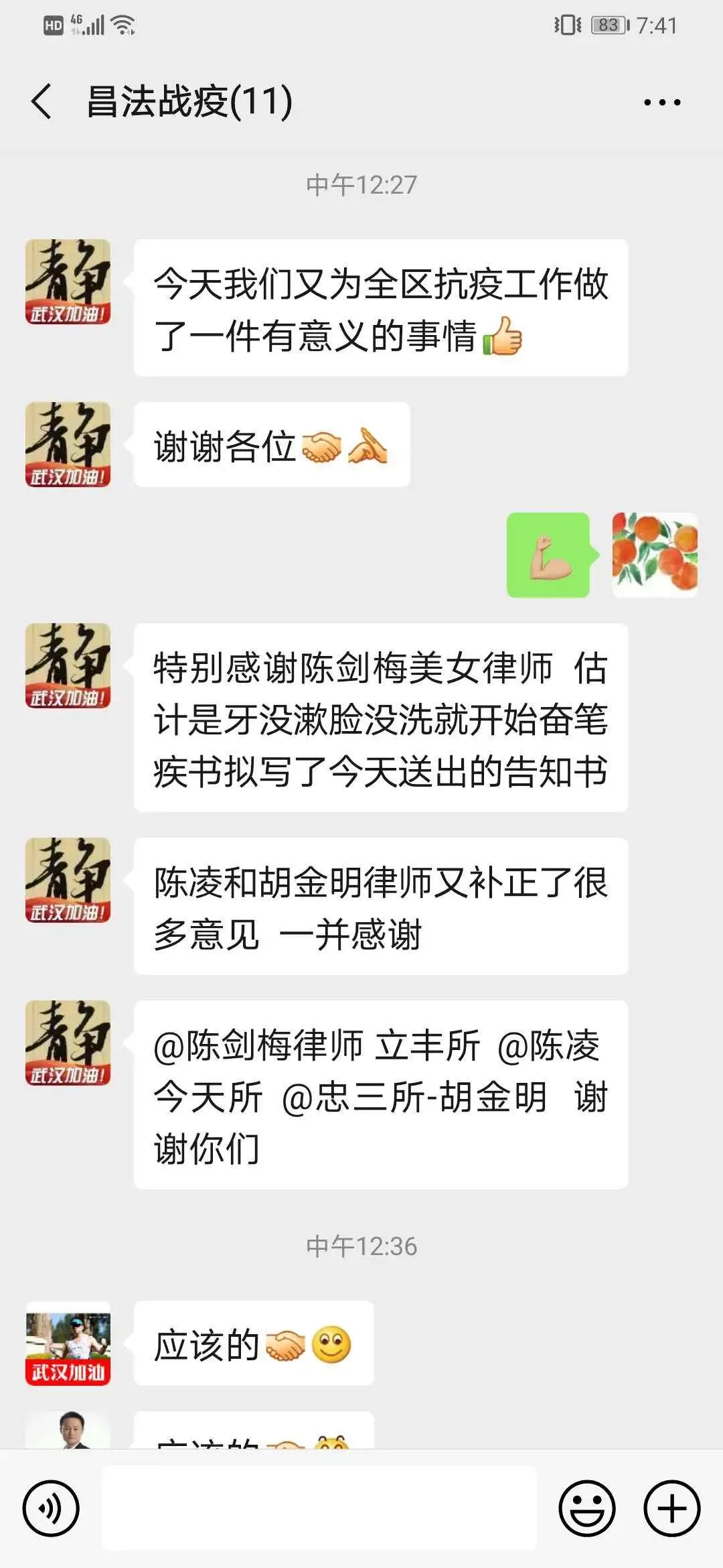中共黨員、普通合伙人律師陳劍梅,參與武昌區(qū)疫情防疫法律服務(wù)工作,負(fù)責(zé)法律匯編、法律宣傳工作,起草《疫情防控告知書》為武昌區(qū)抗“疫”工作貢獻(xiàn)力量。