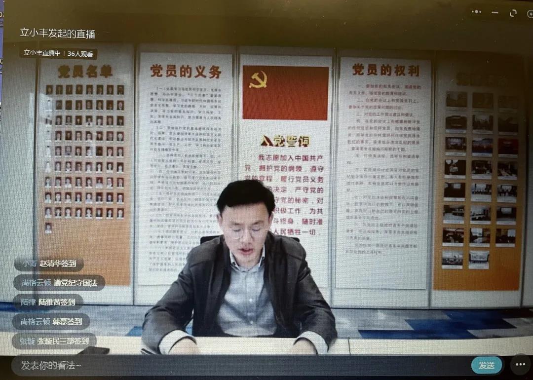 此次會(huì)議采用線上直播形式進(jìn)行,全體黨員同志、入黨積極分子在直播間留言簽到。