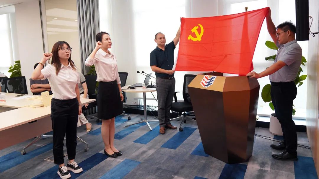 李淑同志入黨宣誓,由支部書記張璇同志領(lǐng)讀誓詞宣誓。