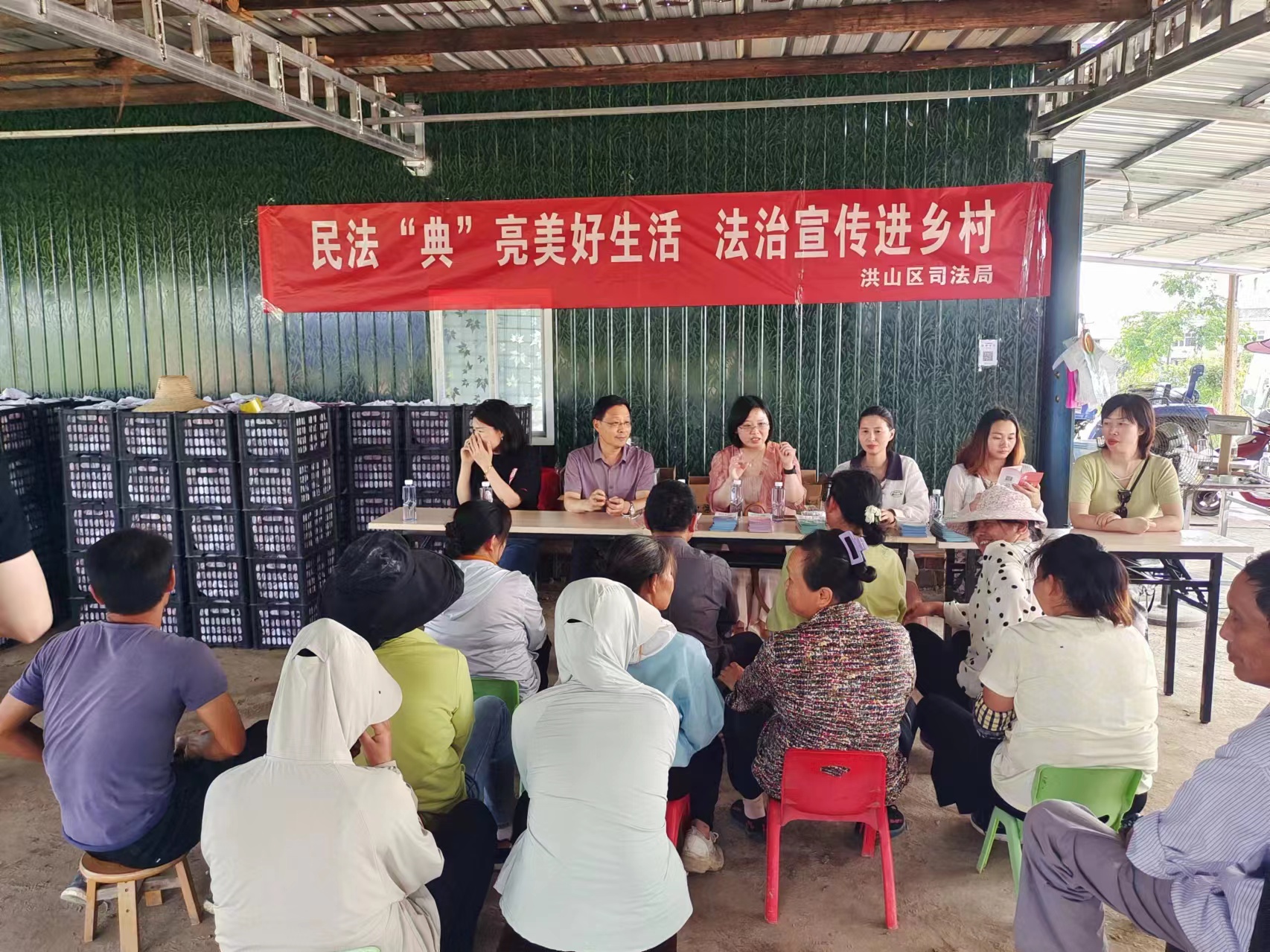 在黃桃基地,結(jié)對(duì)消費(fèi)愛心組還現(xiàn)場(chǎng)開展了“民法典亮美好生活,法治宣傳進(jìn)鄉(xiāng)村”宣傳活動(dòng),洪山區(qū)司法局主要負(fù)責(zé)人帶領(lǐng)立豐所等5家律所律師現(xiàn)場(chǎng)為前來咨詢的村民解答法律問題,并為村民送上民法典宣傳折頁(yè)和普法小禮品,并就村里常見法律問題進(jìn)行宣傳普及,提供優(yōu)質(zhì)的法律服務(wù)。