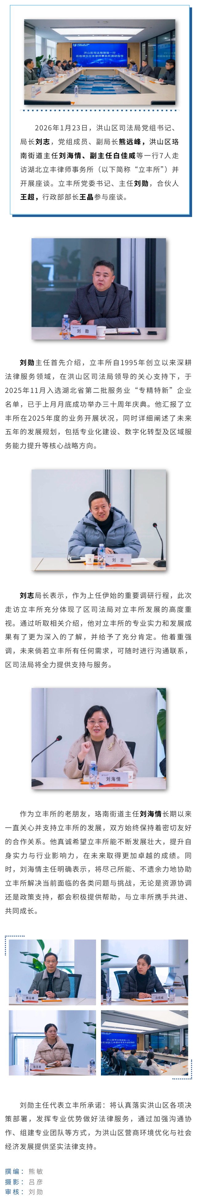 洪山區(qū)珞南街道、洪山區(qū)司法局領(lǐng)導(dǎo)走訪立豐所