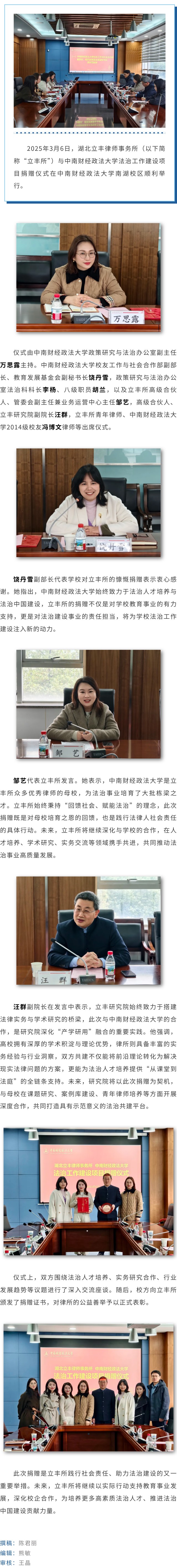 立豐所向中南財經(jīng)政法大學(xué)捐贈法治工作建設(shè)項目款項
