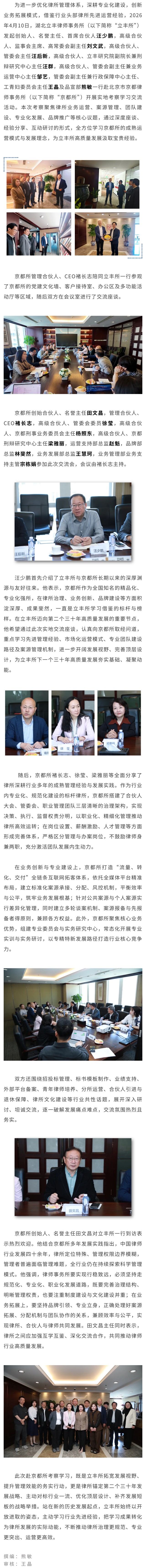 立豐所首席合伙人汪少鵬一行赴北京京都律師事務(wù)所考察交流